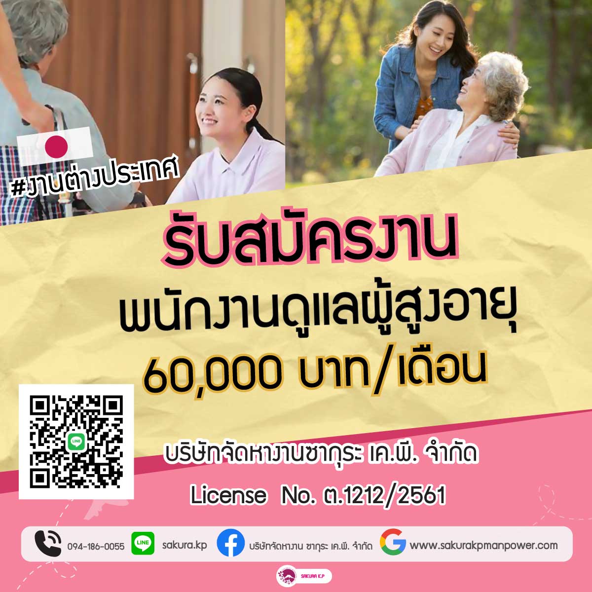 รับสมัครคนหางานไปทำงานที่ประเทศญี่ปุ่น นายจ้างชื่อ Kousei-kai Medical Corporationประเภทอุตสาหกรรมการบริการ ตำแหน่งผู้บริบาล(ดูแลผู้สูงอายุ)ชายหรือหญิง จำนวน 1 คน ตั้งแต่วันที่ 2พฤศจิกายน 2563 ถึง วันที่ 31 ธันวาคม 2563 อัตราค่าตอบแทน เดือนแรก เบี้ยเลี้ยงฝึกงาน 70,000 เยนต่อเดือน เดือนที่ 2 เป็นต้นไปจะได้รับค่าจ้าง 200,000 เยนต่อเดือน คิดเป็นเงินไทย 60,000 บาทต่อเดือน